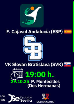 Partido correspondiente a los 32º de final de la CEV CHALLENGE CUP en la que el conjunto local Fundación Cajasol Andalucía y el actual campeón eslovaco el VK Slovan Bratislava, se medirán en Los Montecillos, el próximo miércoles 29 de octubre a las 19.00 h. Las nazarenas, que la pasada temporada alcanzó los 16º de final tras la épica victoria en casa ante Panathinaikos aspira a pasar esta ronda para lo que deberá vencer en casa e ir con la máxima tensión para el partido en Eslovaquia del día 5 de noviembre.