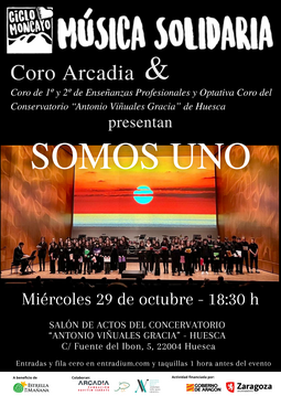 El Coro Arcadia y los coros del Conservatorio “Antonio Viñuales Gracia” de Huesca presentan “SOMOS UNO”, un concierto coral emocionante, vibrante e interactivo.