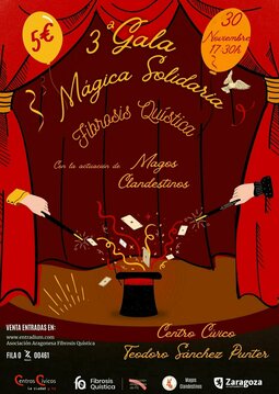 La Asociación Aragonesa de Fibrosis Quística organiza su 3ª Gala Solidaria “Magia por la Fibrosis Quística”, que se va a realizar el día 30 de noviembre, sábado, a las 17:30 horas en el Centro Cívico Teodoro Sánchez Punter, (Plaza mayor nº2, Barrio San José). Contaremos con la actuación y colaboración de Magos Clandestinos.