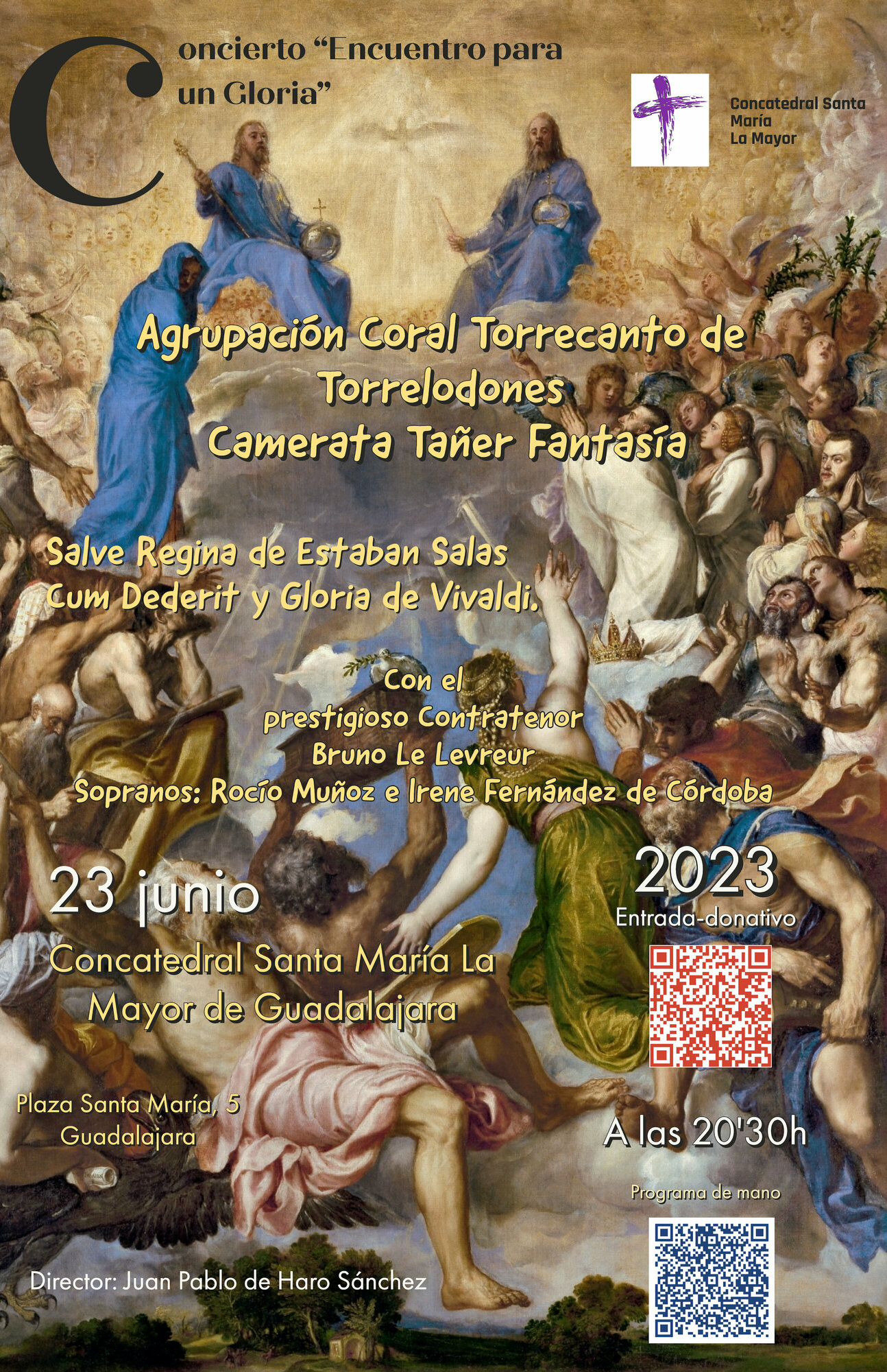 La Agrupación Coral Torrecanto de Torrelodones presenta un programa basado en la música Sacra del período barroco con dos compositores contrastantes, Estéban Salas y Antonio Vivaldi. Se podrá disfrutar de Salve Regina de Estebán Salas, para seguir con dos obras de Vivaldi; Cum dederit, de su cantata Nisi Dominus RV 608 y finalizando con la obra que da nombre a este concierto, Gloria RV 589.