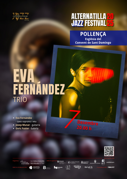 Amb una trajectòria que uneix saxo soprano i veu, Eva Fernández proposa un univers íntim on cançó i jazz es donen la mà. El trio que presenta —amb Josep Munar i Enric Fuster— és la mateixa formació amb què va gravar Yo Pregunto(2018), un treball que ha definit el seu llenguatge propi: proper, poètic i amb swing subtil.