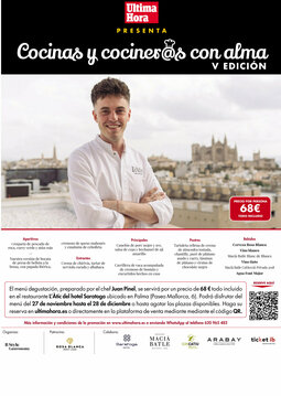 El menú degustación, preparado por el chef Juan Pinel, se servirá por un precio de 68 € todo incluido en el restaurante L’Àtic del hotel Saratoga ubicado en Palma (Paseo Mallorca, 6).
