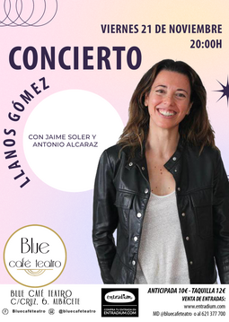 Llanos Gómez se define como una "cantautora por casualidad". Viene de Valencia dispuesta a tocarte el corazón. Te invita a que vengas a liberar tus emociones. Y eso no lo podría conseguir sin la compañía de Antonio Alcaraz, al bajo, y Jaime Soler, a la guitarra.